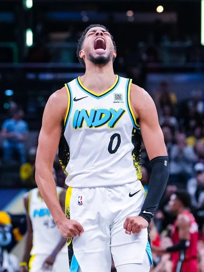 虎扑09月03日讯 步行者官方更新X,晒出一组步行者球员泰雷斯-哈利伯顿的赛场照与球迷分享。